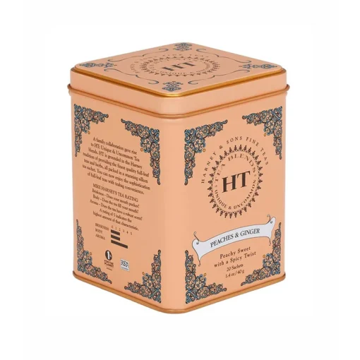 Ingredience: Černý čaj, broskvové aroma, zázvorové aroma, kousky broskví a zázvoru