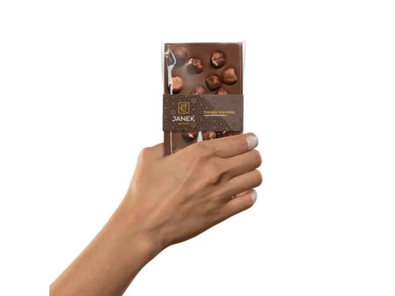 Tohle je trochu oříšek. Tentokrát lískový. Jemná mléčná čokoláda provoněná vanilkou. Žádnými aromaty nebo esencemi. Ale zrníčky pravé vanilky. K tomu přidejte ručně přebrané lískové ořechy a máte tabulku, která voní, křupe a zároveň se pomalu rozplývá na jazyku.