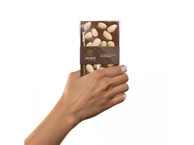Tohle je trochu oříšek. Naštěstí ten mandlový. Jemná mléčná čokoláda provoněná vanilkou. Žádnými aromaty nebo esencemi. Ale zrníčky pravé vanilky. K tomu přidejte ručně přebrané mandle a máte tabulku, která voní, křupe a zároveň se pomalu rozplývá na jazyku.