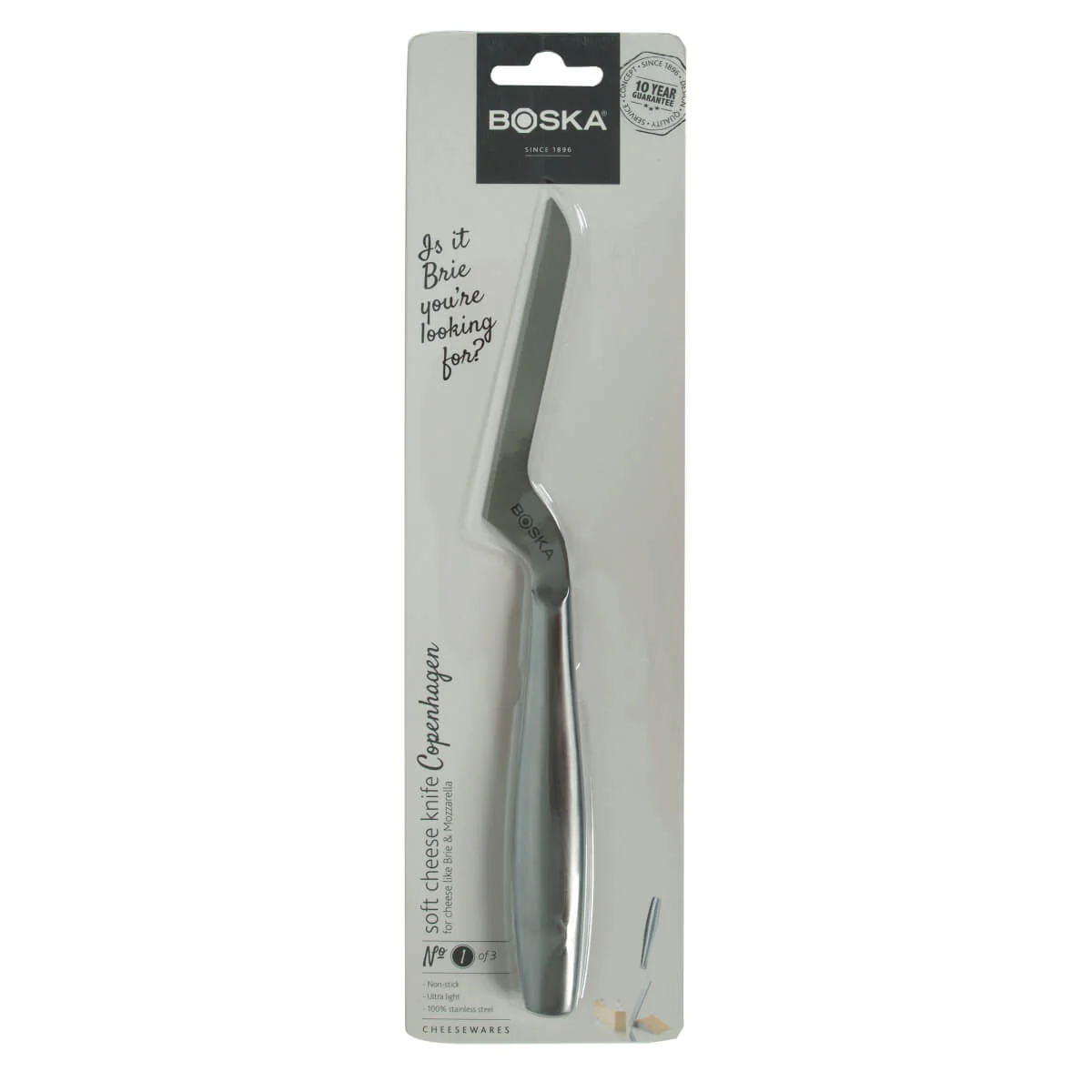 Užijte si doživotní záruku, kterou BOSKA nabízí, díky čemuž je nůž na sýr Soft Copenhagen vynikající volbou pro začínající i zkušené milovníky sýrů.