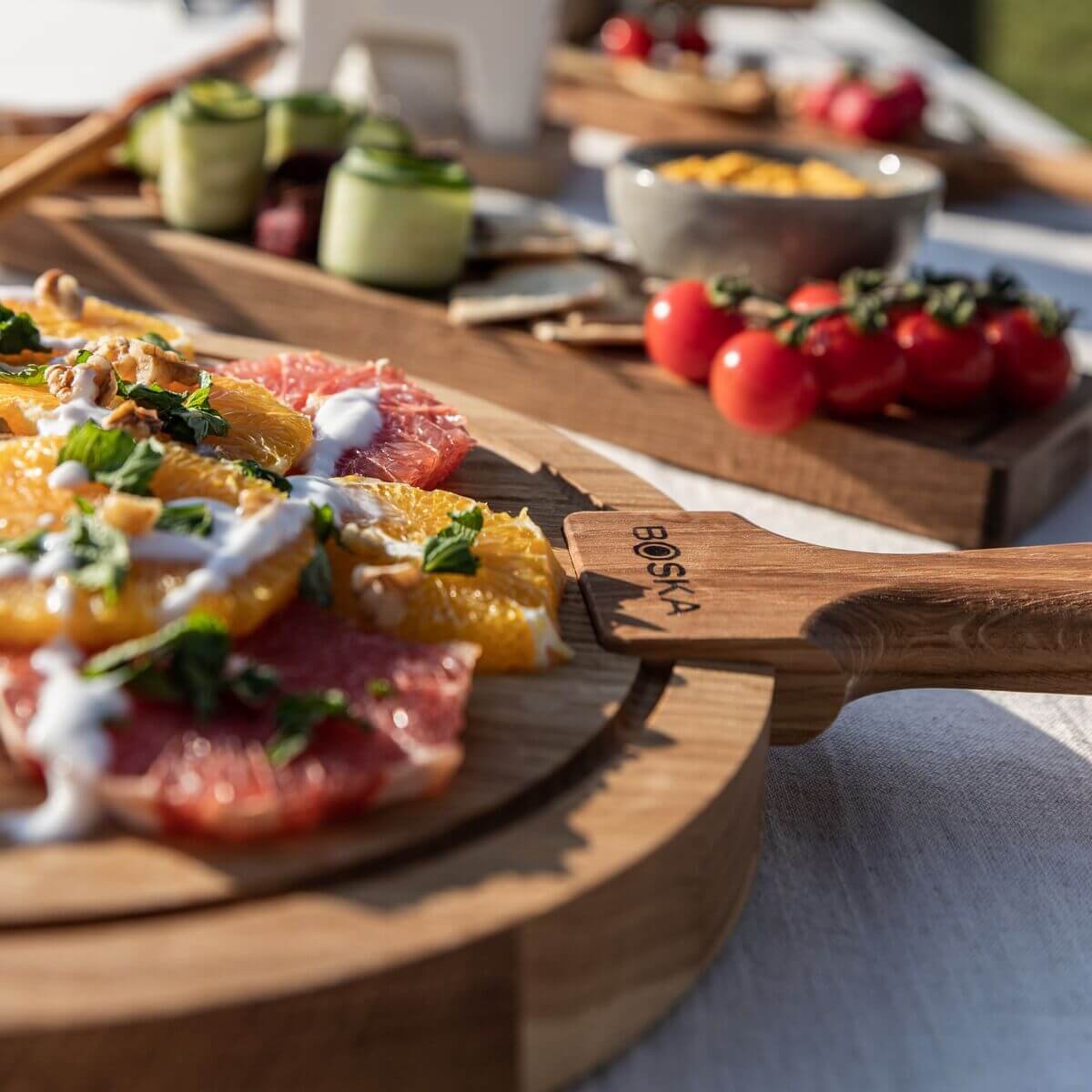 Užijte si večer s lahodným občerstvením? Můžete to udělat se servírovací deskou Round Friends M. Pokud na této tabuli představíte své nejchutnější sýry a čerstvé produkty, budou vypadat ještě lépe. Se sýrovým prkénkem spojíte lidi a zajistíte příjemnou konverzaci u stolu.