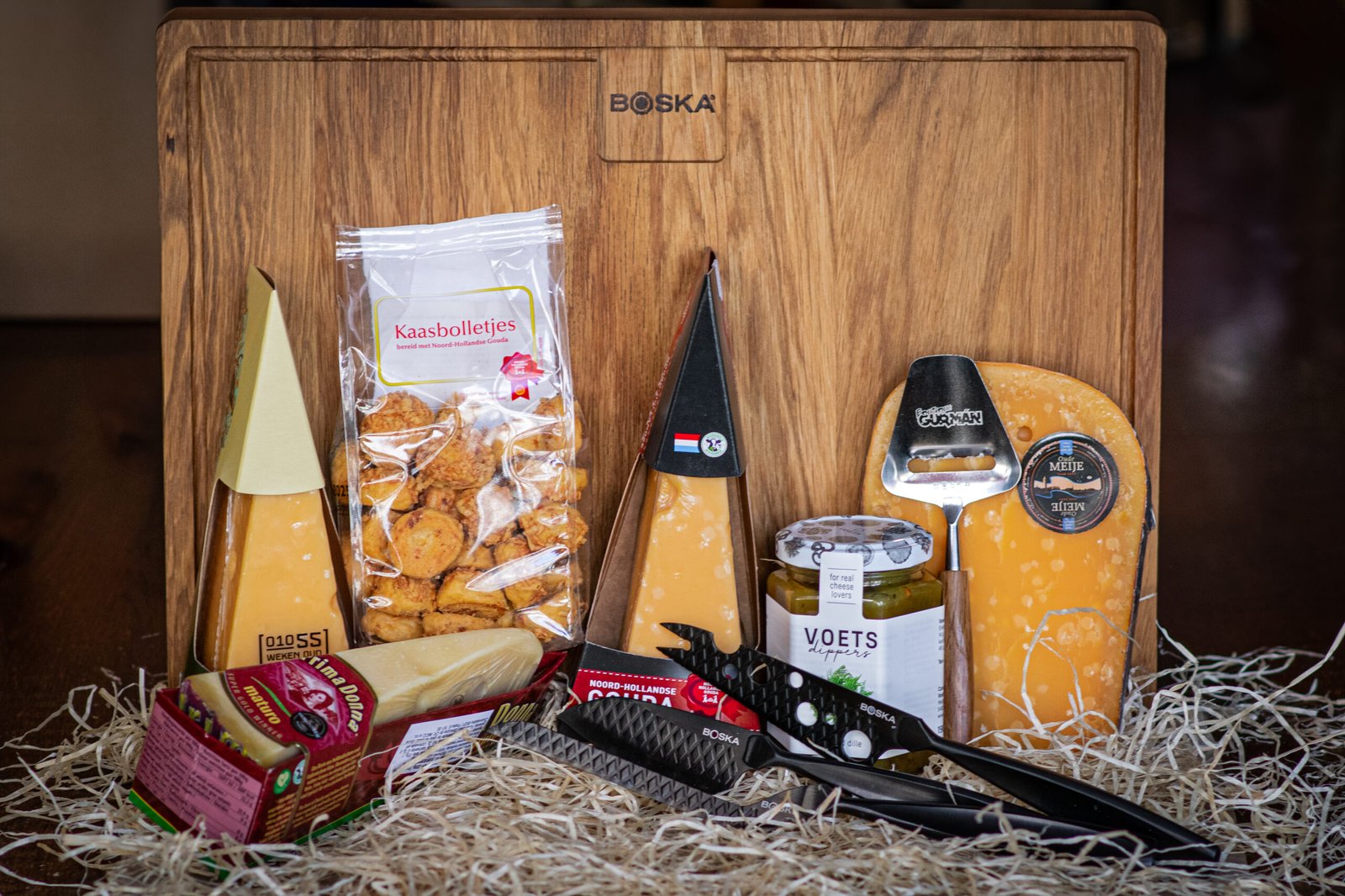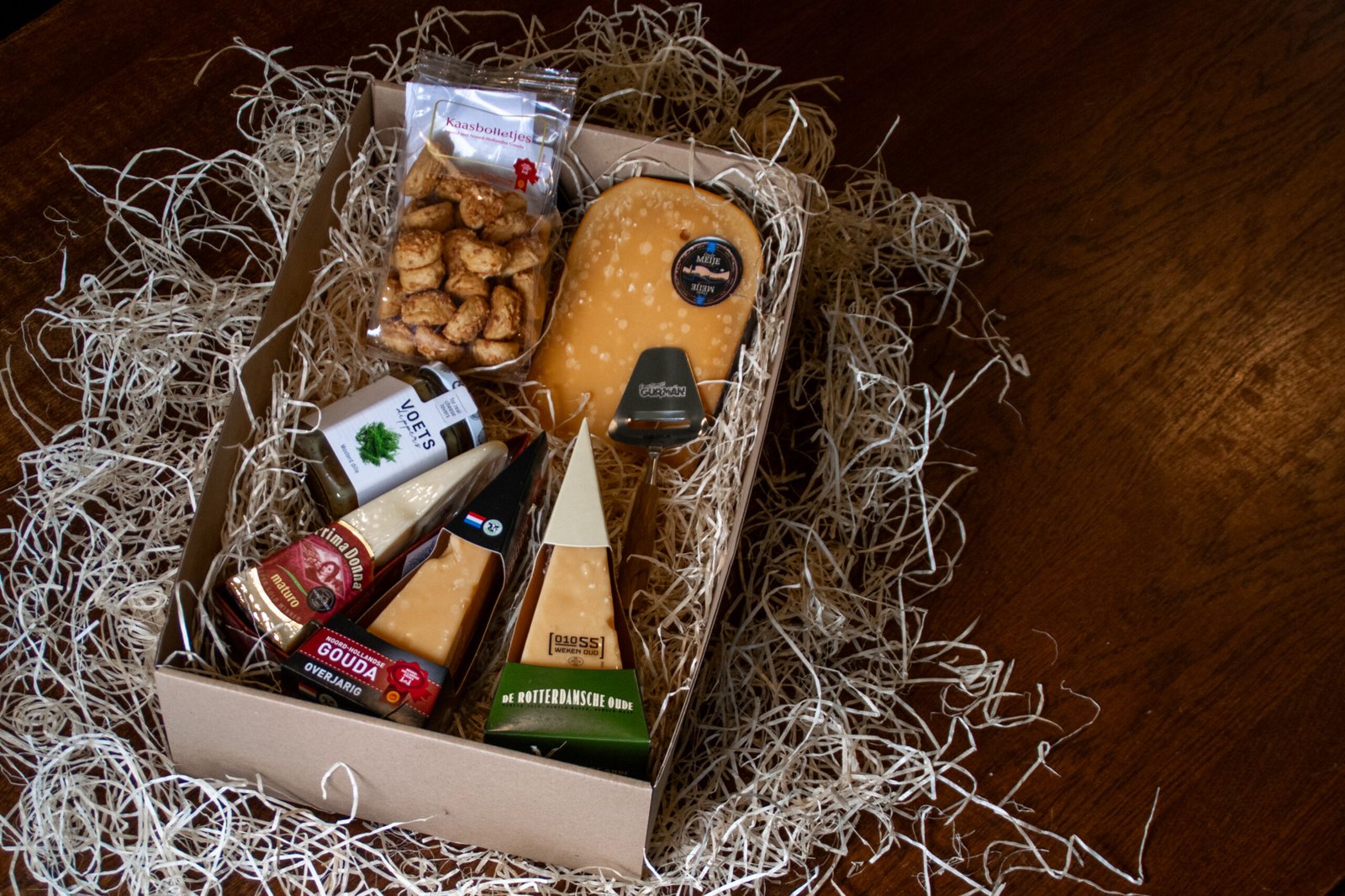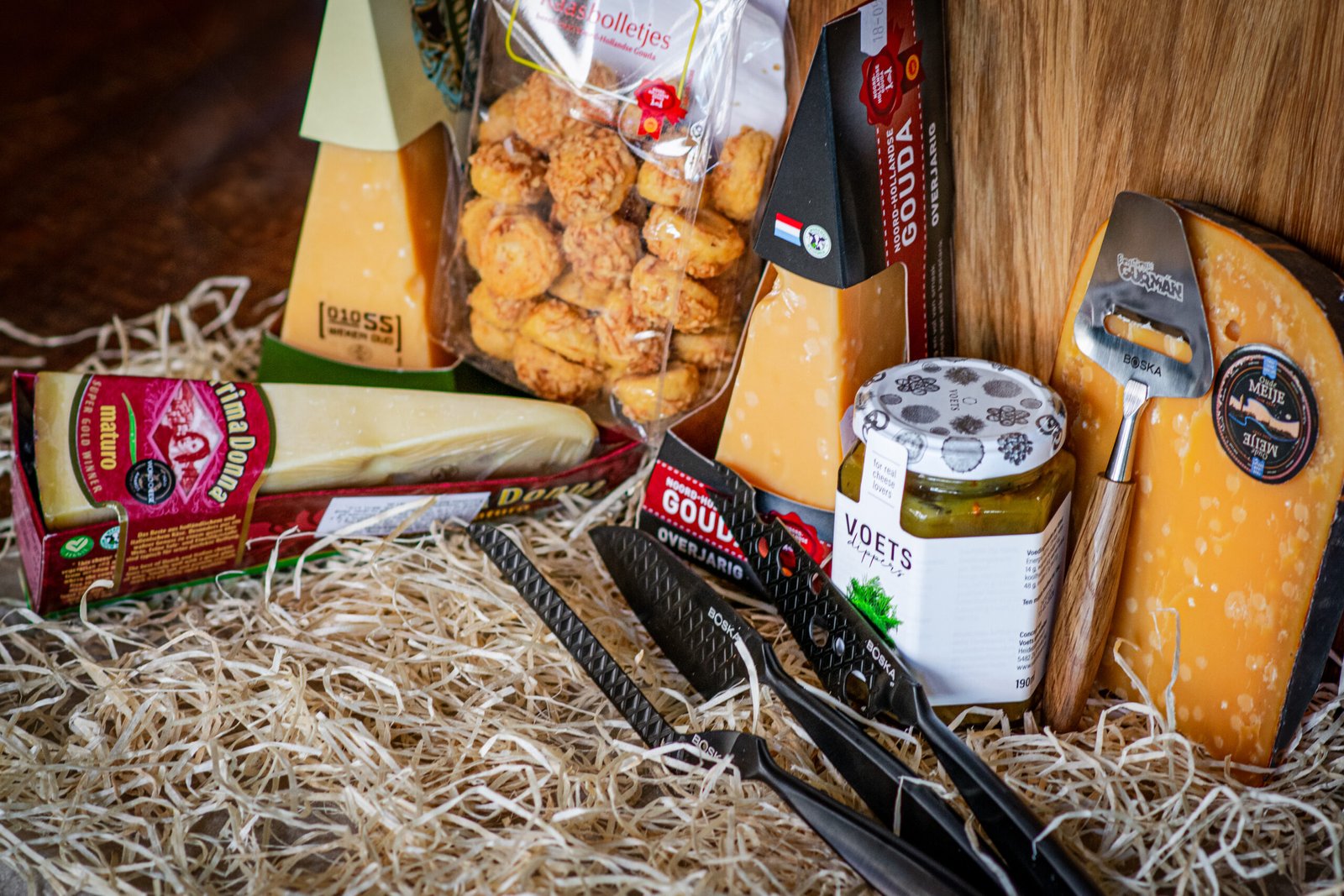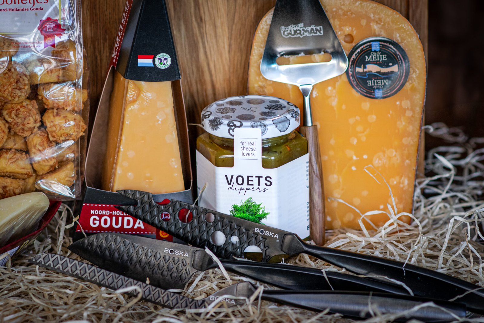 Na tohle jsme mistři. Sýry. Vybírali jsme, u našich obchodních přátel v Holandsku, sýry nejen podle chuti, ale i takové které nemají problém s přepravou. Výseče Prima donny, 3 letého Noord Hollanderu, 1 letého Old Rotterdamu a k tomu kus čerstvě uříznutého dvouletého Oude Meije, našeho Ferrari mezi sýry, vás nenechají na pochybách, že o sýrech vážně víme…
