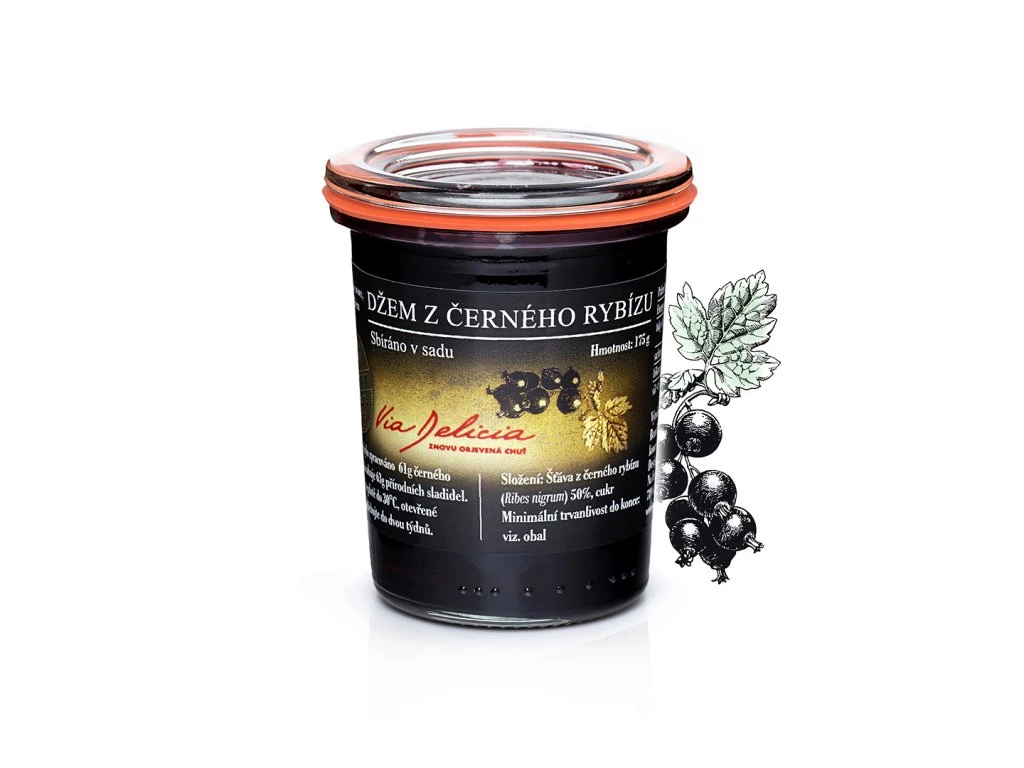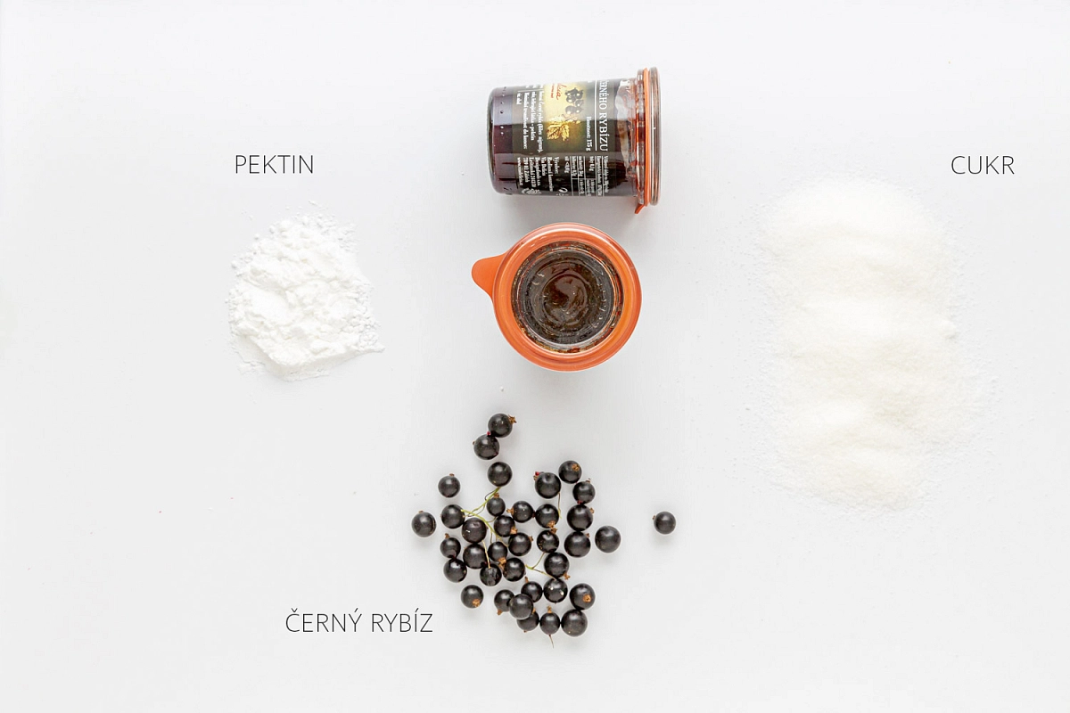 Složení výrobku: černý rybíz (Ribes nigrum), cukr, želírující látka – pektin