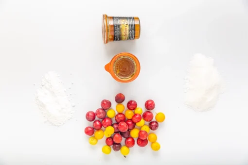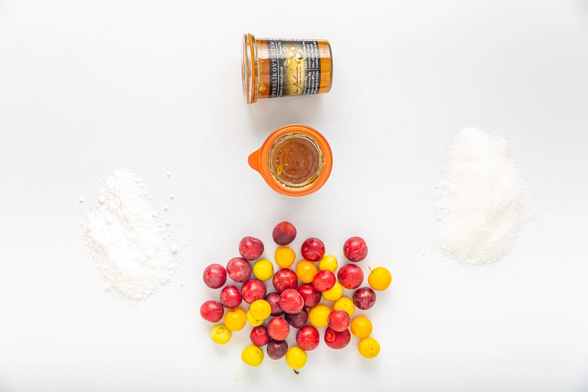 Složení výrobku: odpeckované plané špendlíky (Prunus cerasifera), cukr, želírující látka – pektin