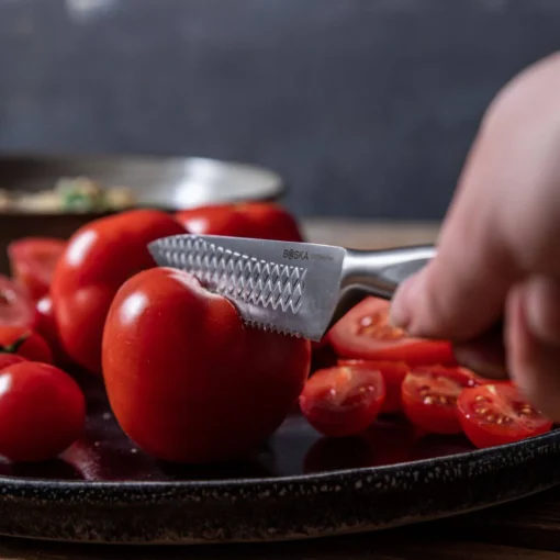 • Jemné zaoblené zoubky: Jako malý nůž na chleba nebo na rajčata zachovává strukturu sendvičů a jemné zeleniny při krájení.